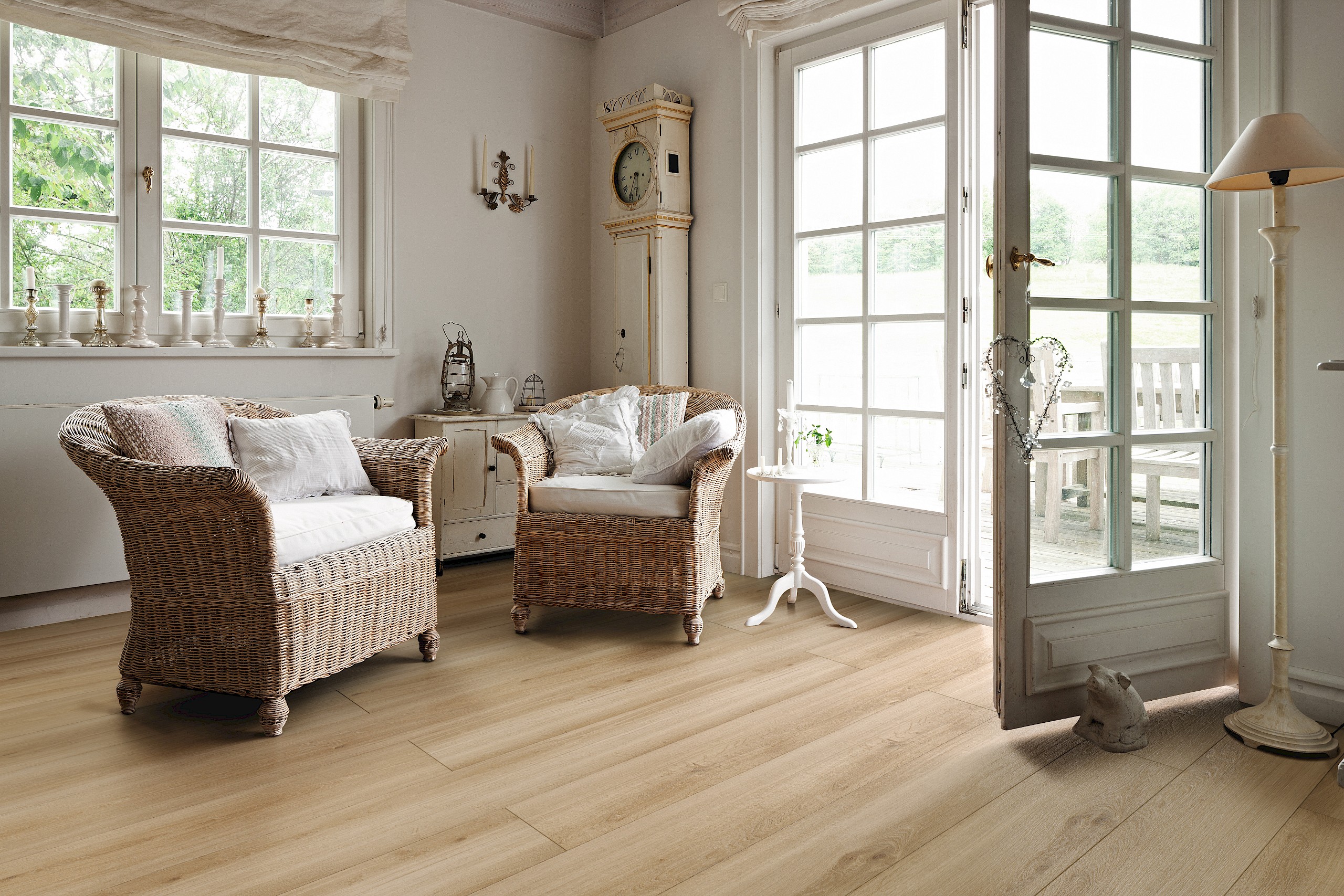 - Autentiska trädekorer i lanthusplankdesign med 4-sidig mikrofas.