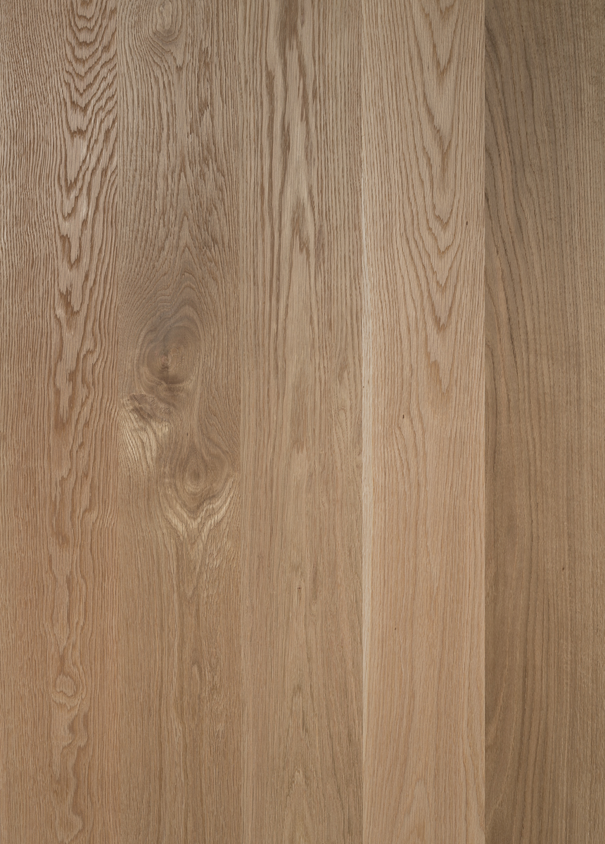 Massivt ekgolv tillverkat av förstklassig nordamerikansk skogsråvara av högsta kvalitet. Den typ av ek vi använder oss av är så kallad rödek med en lätt rosaröd ton, istället för den mer bruntonade viteken. Ekgolvet har mittspont och ändspont, samt är spårade på undersidan för att undvika att golvbrädorna kupar sig. Golvbrädorna levereras hyvlade och obehandlade i lätthanterliga buntar. Vid beställning, lägg på ca 8 % utöver faktisk golvyta. Golven är varsamt nedtorkade till en idealisk fukthalt på 8 %, vilket även kallas för ”möbeltorrt”. Detta är samma låga fuktkvot som möbler och ger därför ett enormt formstabilt golv perfekt lämpade för inomhusmiljöer.
